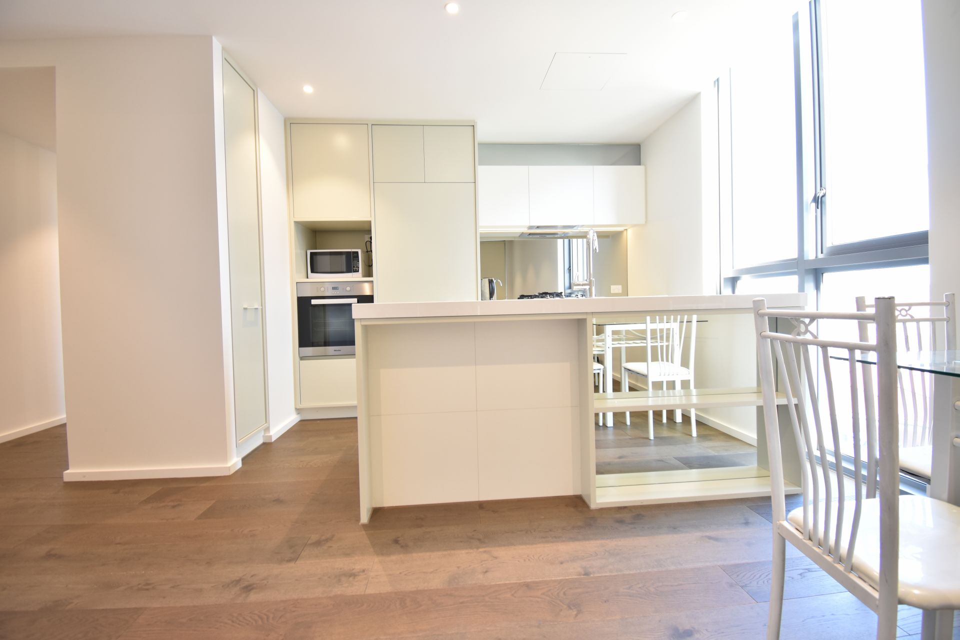 The gas kitchen is equipped with MIELE appliances, Fisher & Paykel Fridge and stone benchtops.