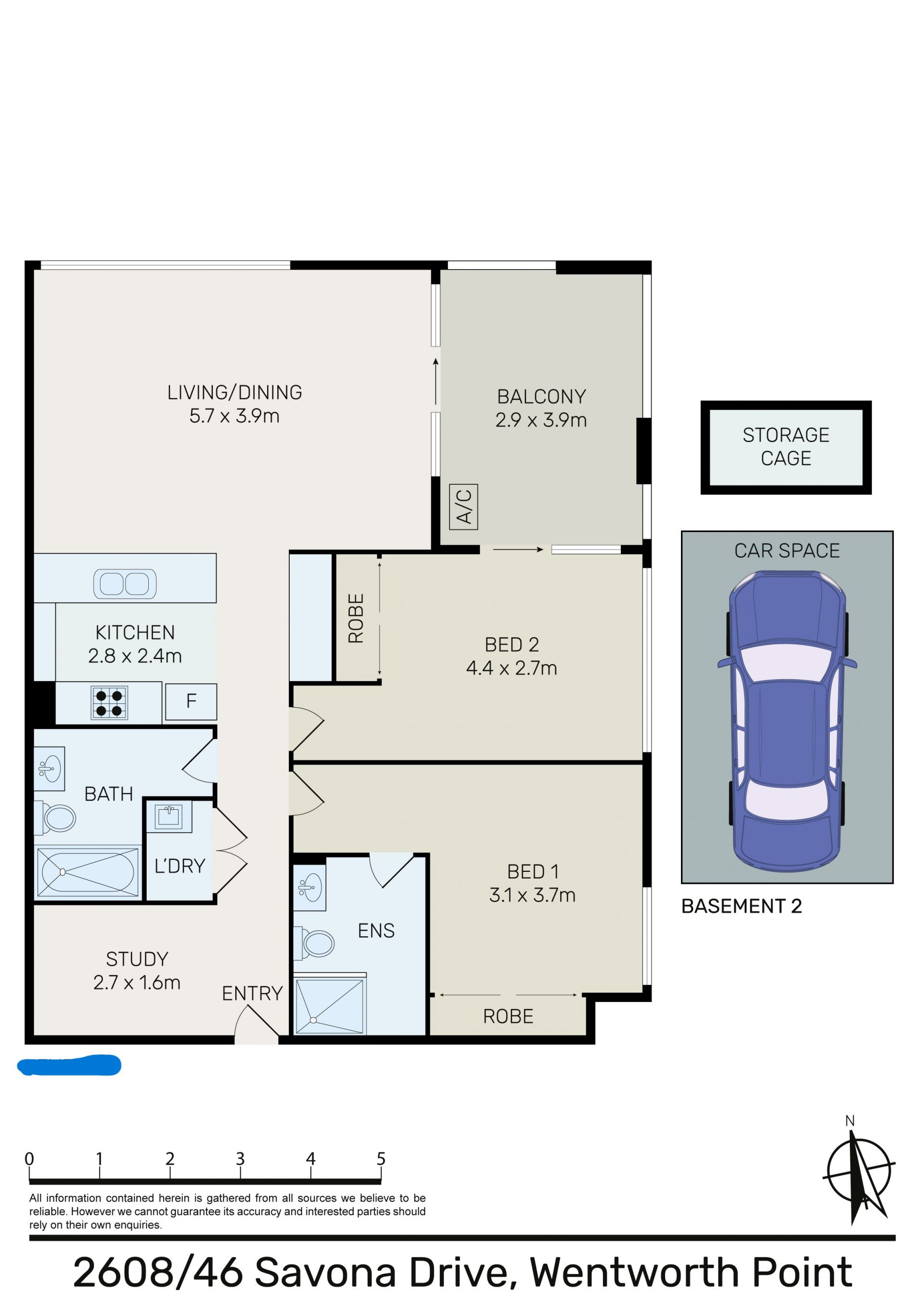 • Secure car space + storage cage