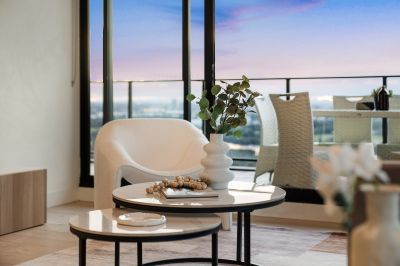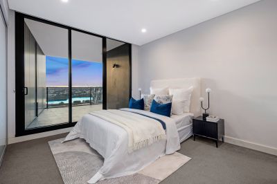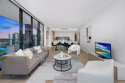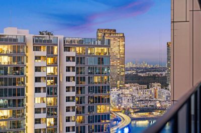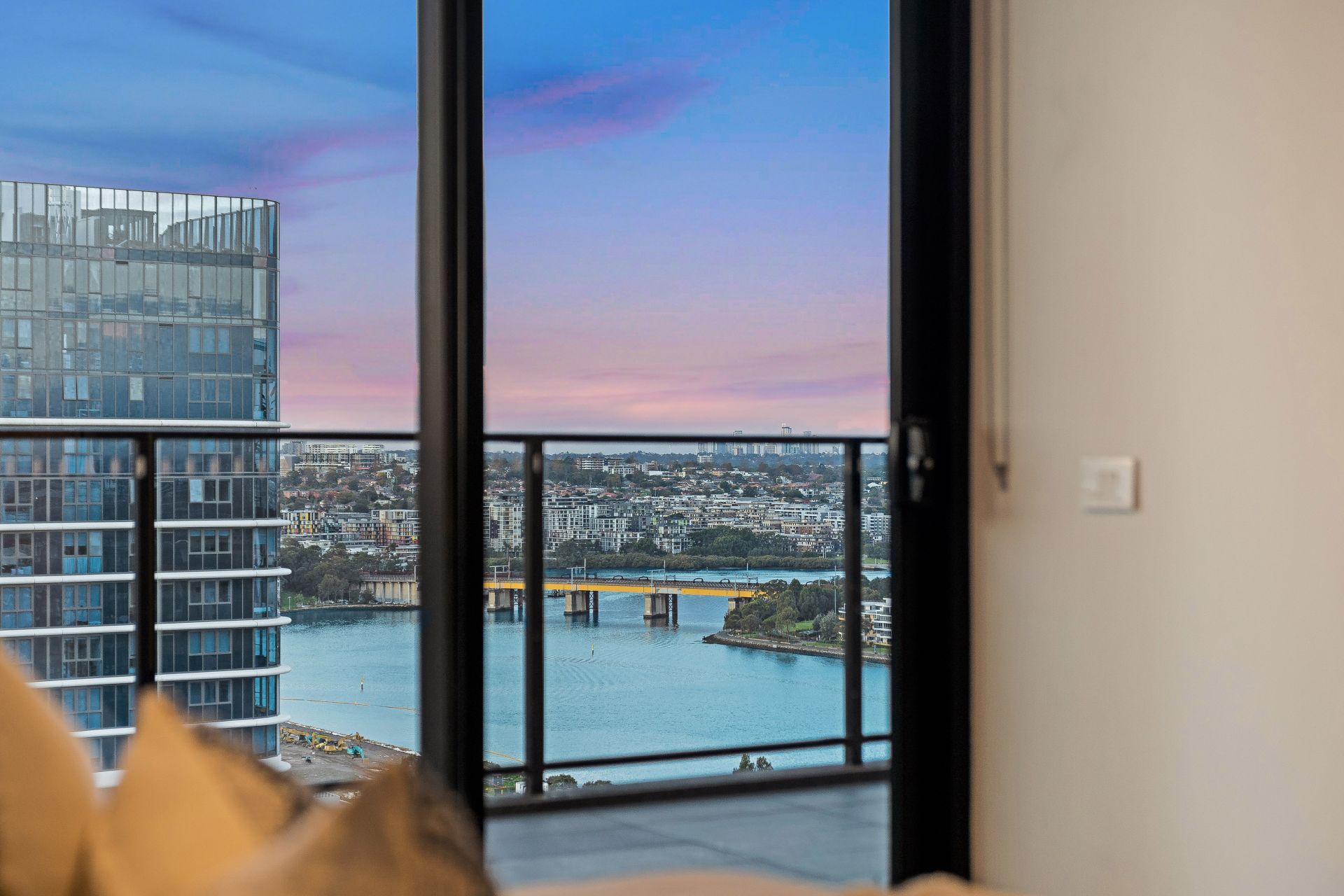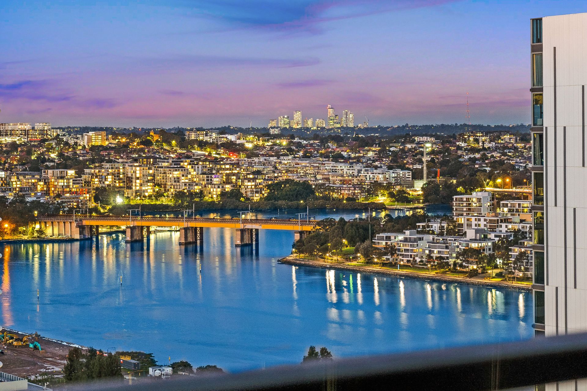 Perched on the 25th floor, this residence boasts 270-degree sweeping views encompassing the tranquil waterfront and the Parramatta skyline. Its prime North-facing orientation ensures abundant natural light throughout the day, while evenings reveal breathtaking sunset vistas.