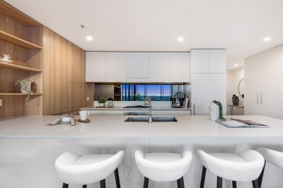 Exceptional Space and Design Spanning an impressive 222 square meters on title, this Sub-Penthouse is one of the largest residences in Wentworth Point. Thoughtfully designed with enhanced joinery and custom storage solutions, it seamlessly combines practicality with refined aesthetics. The spacious open plan living and dining areas are designed to maximise both comfort and functionality, creating an inviting atmosphere for entertaining or relaxation.